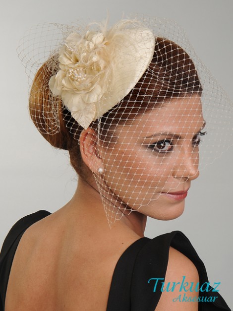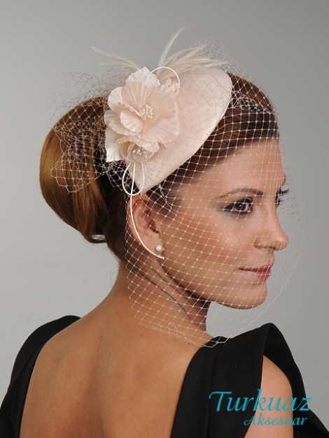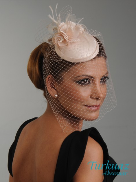 060 PUDRA RENGİ NİKAH ŞAPKASI