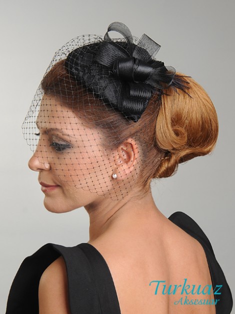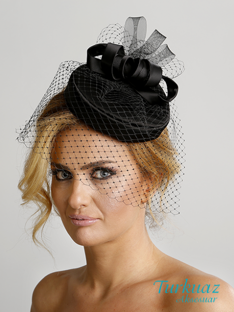 057 SİYAH TÜLLÜ KEP ŞAPKA