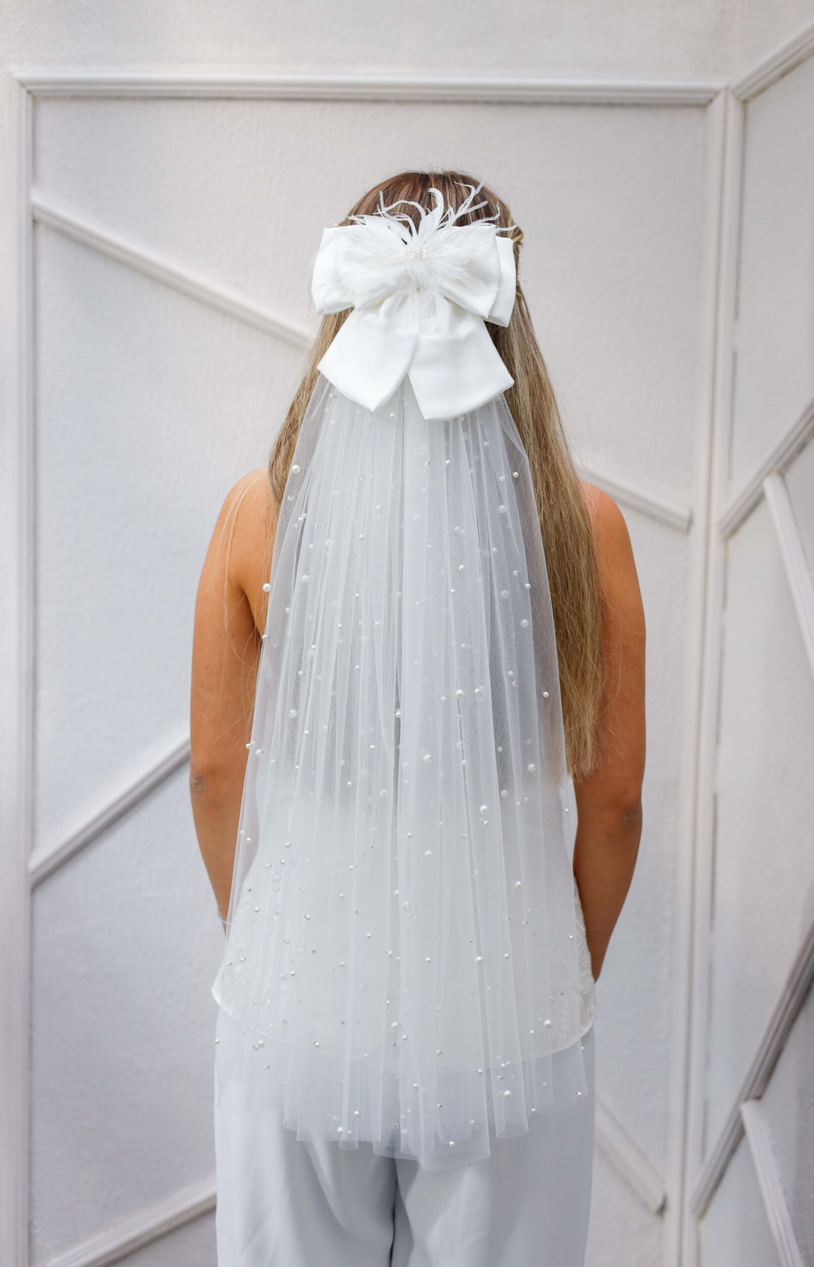 Gelin Saç Aksesuarı İncili Fiyonk Beyaz Duvak