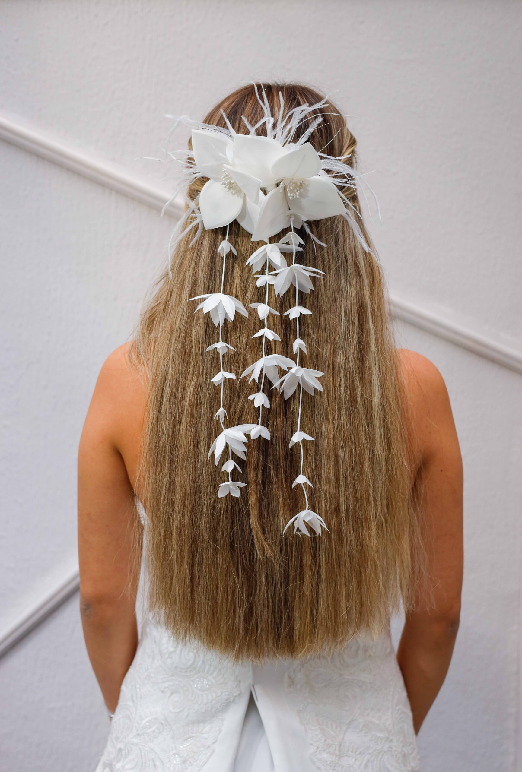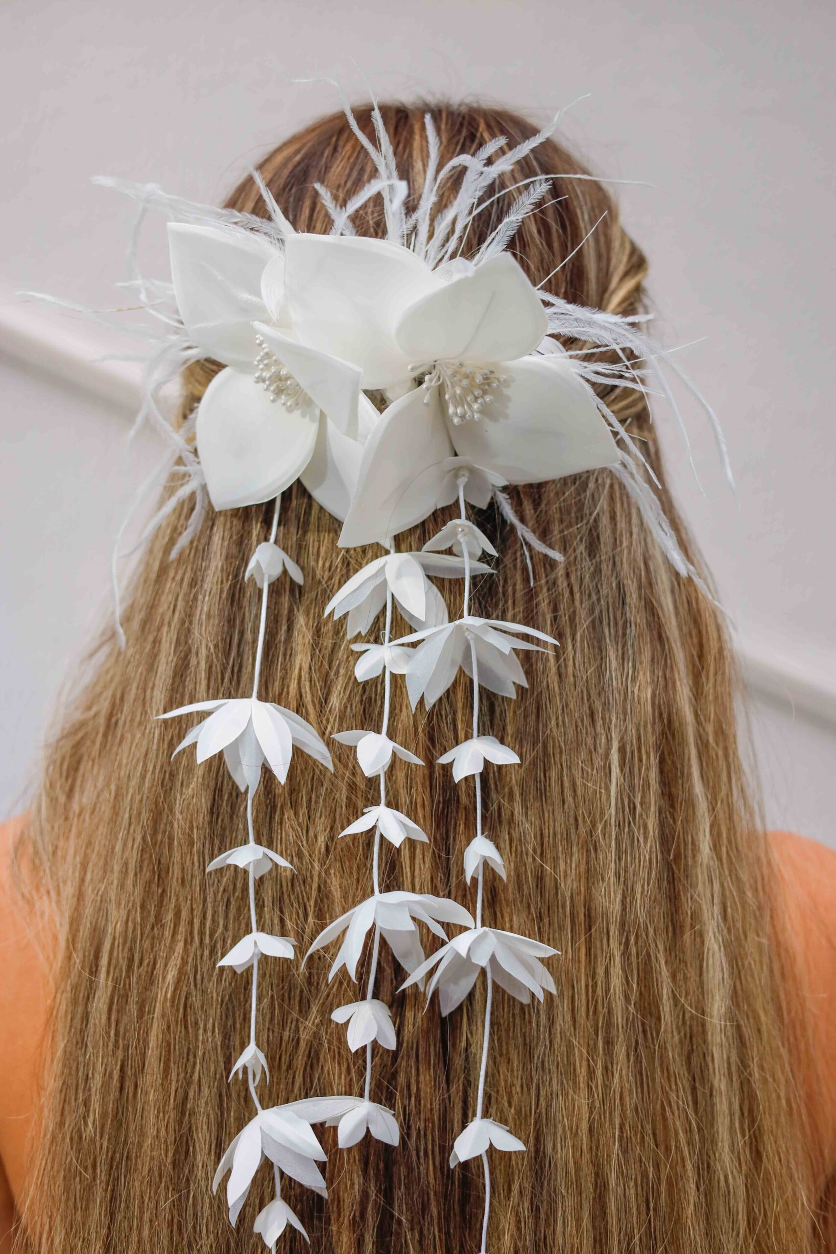 Gelin Saç Aksesuarı/ Nikah Düğün Sarkıntılı Çiçek İnci Beyaz Saç Aksesuarı