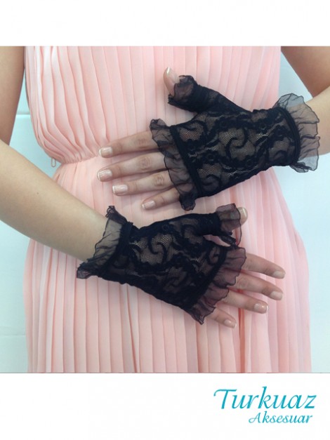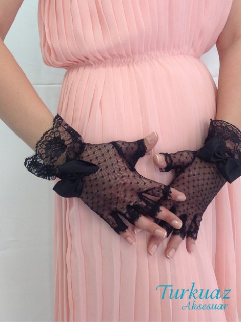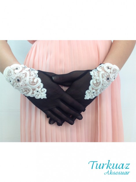 E004 Siyah Dantel Eldiven