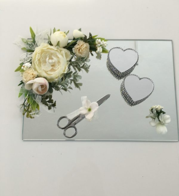 AYNA ÜZERİNE ÇİÇEKLERLE SÜSLENMİŞ, NİŞAN TEPSİSİDİR.
