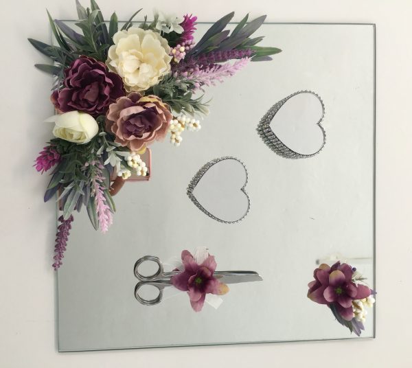 AYNA ÜZERİNE ÇİÇEKLERLE SÜSLENMİŞTİR.