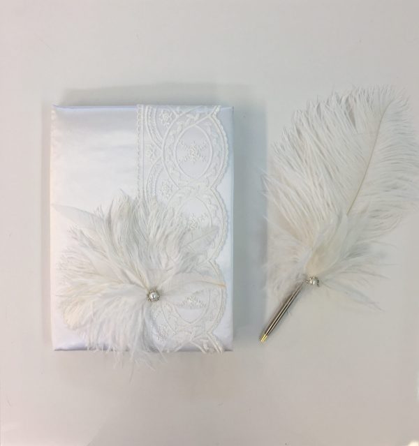 GELİN ANI DEFTERİ TÜYLERLE SÜSLENMİŞTİR.