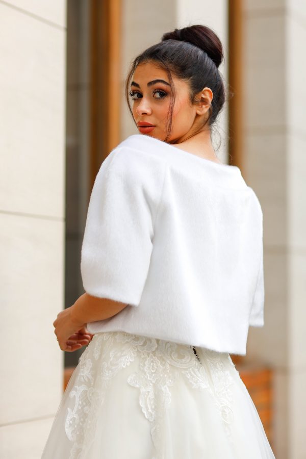 İmitasyon Kürk Ceket. Kayık Yaka, Yarım Kol. Standart Beden’dir.