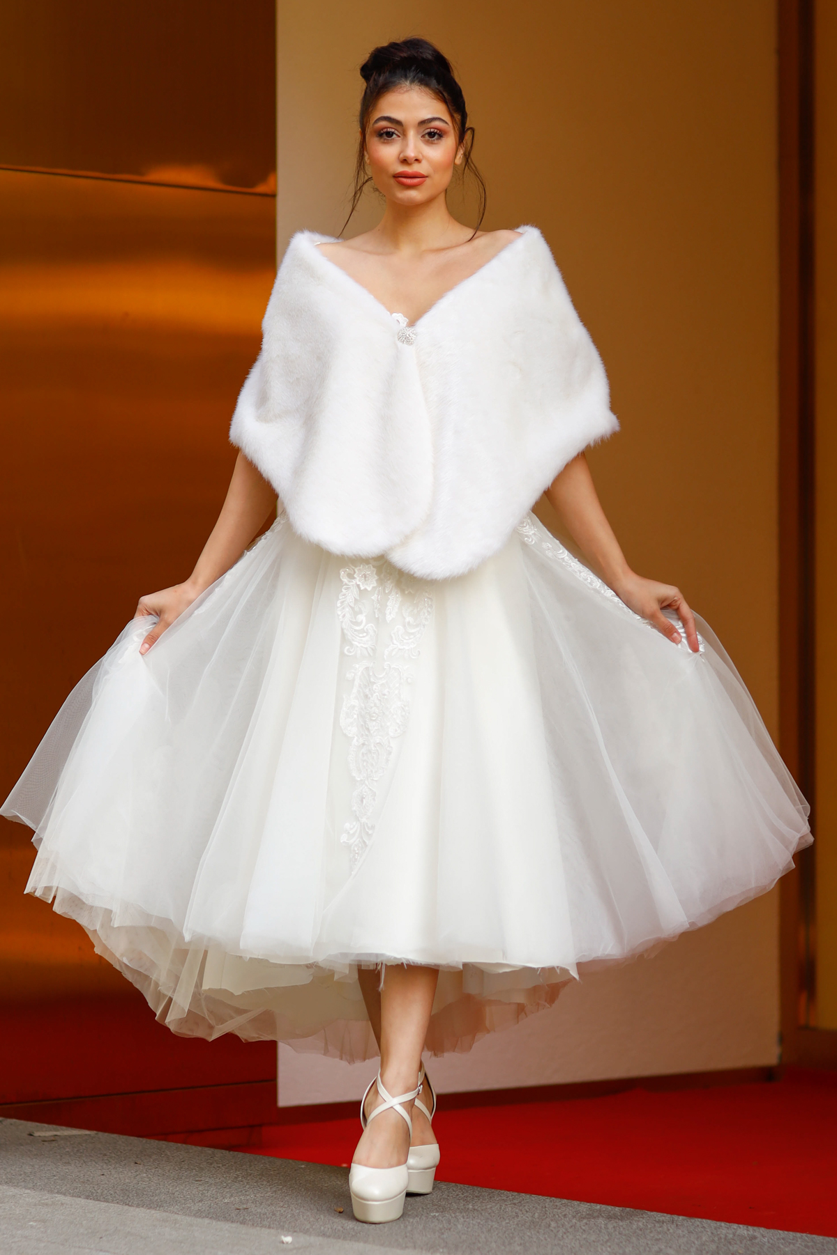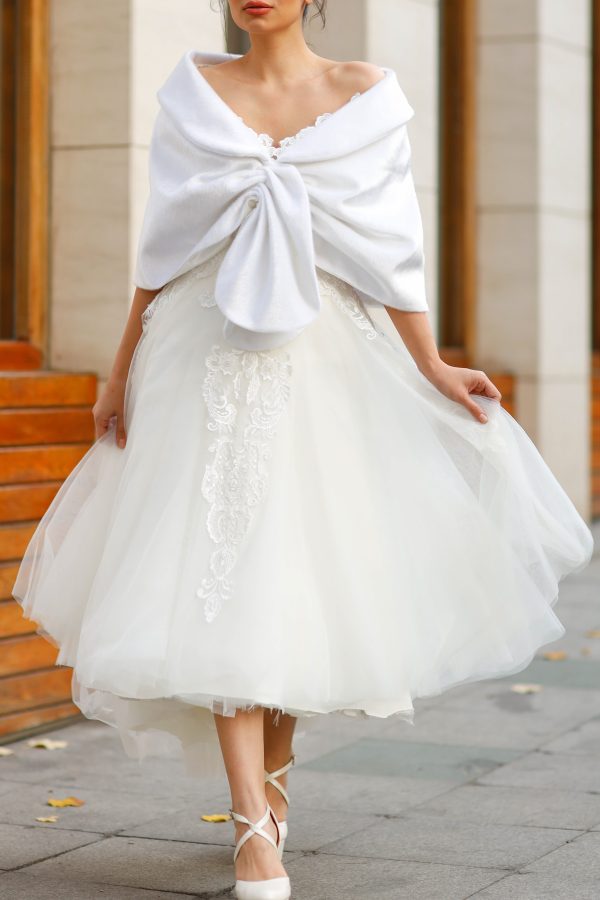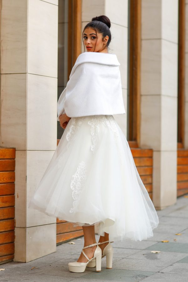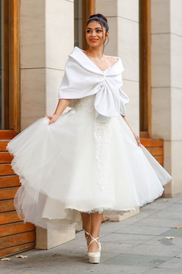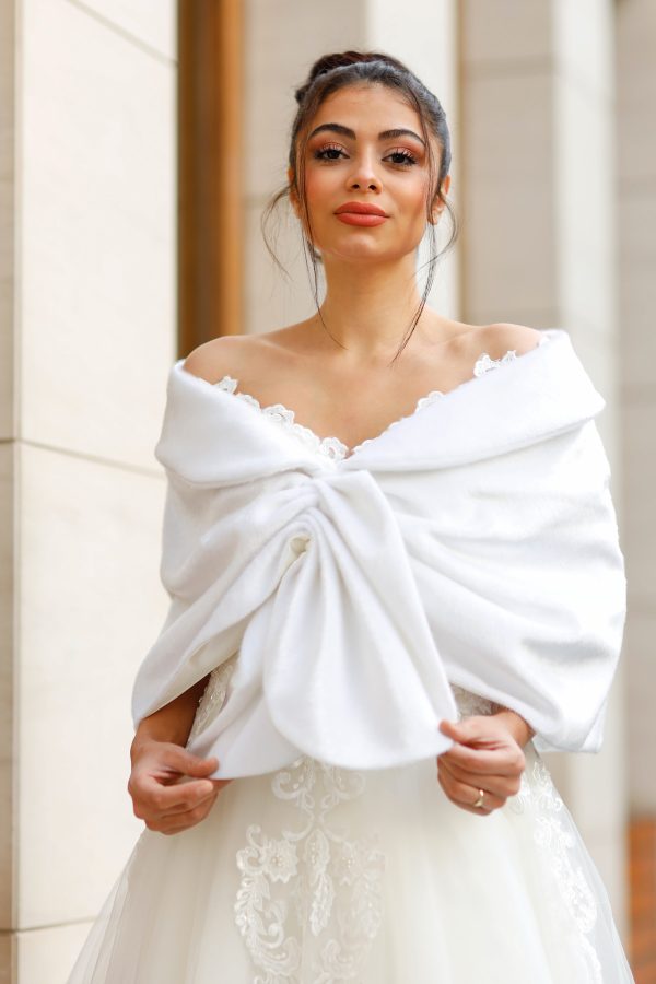 Tay Kumaş Gelin Pelerin. Kolsuzdur, Kayık Yaka Çıtçıt Kapamalı.