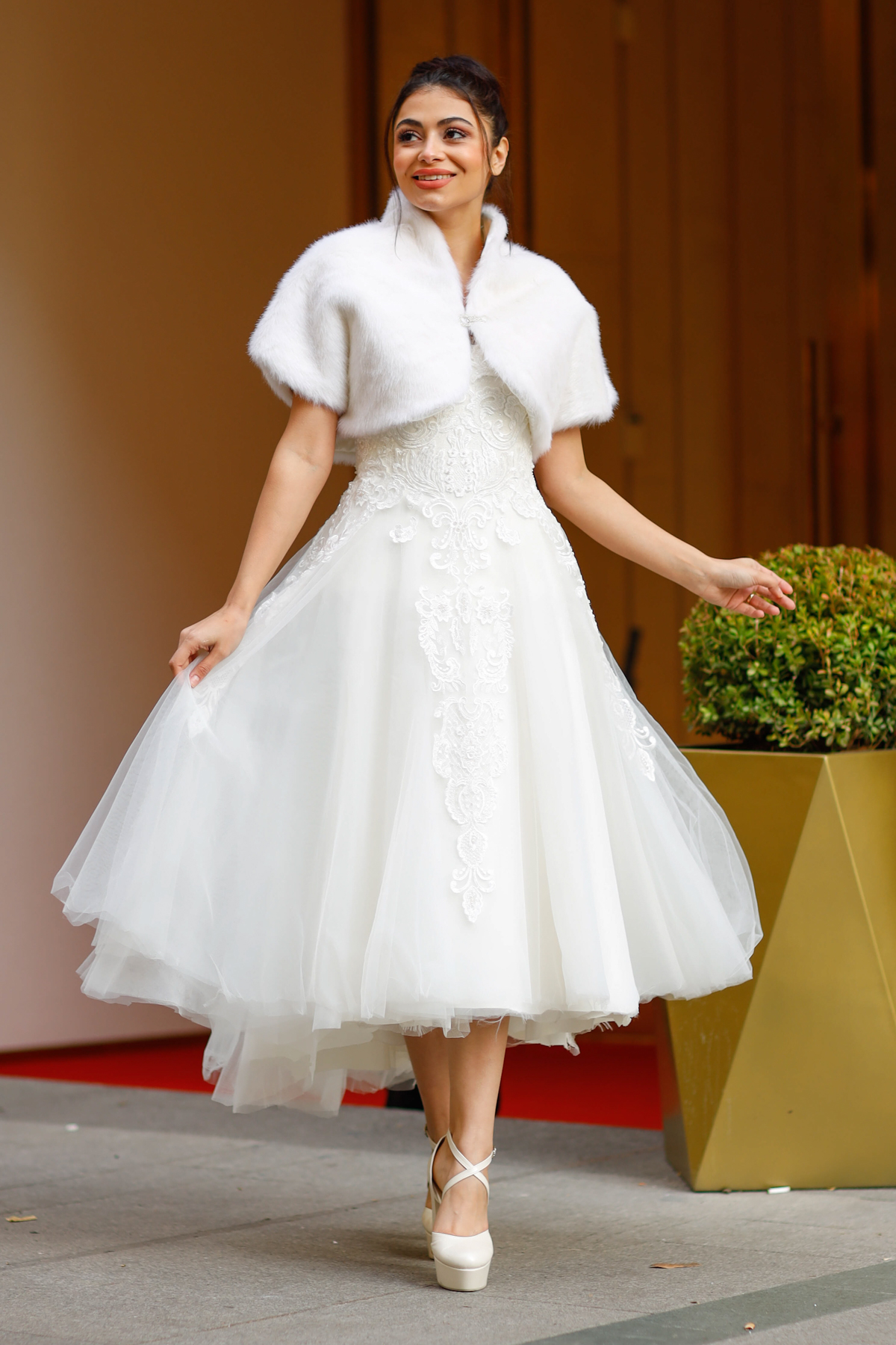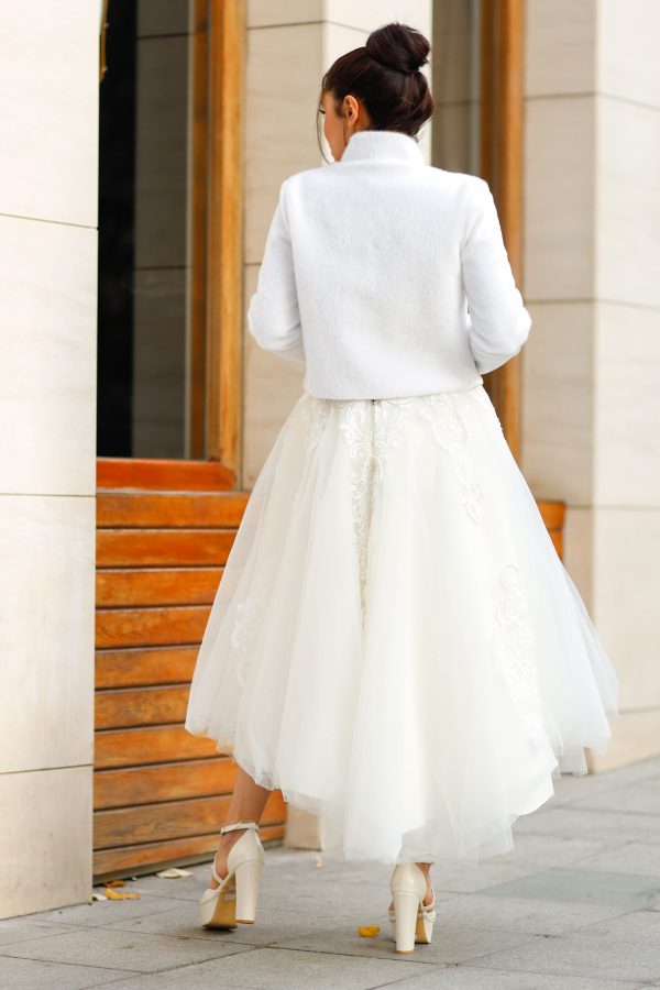 İmitasyon Kürk Ceket. Beyaz Uzun Kol Dik Yaka.